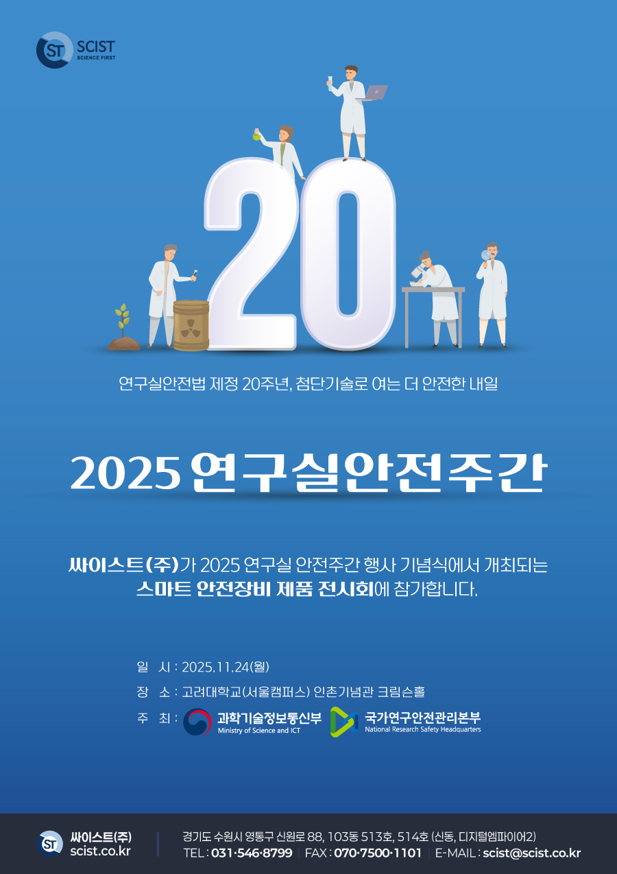 싸이스트(주)가 2025 연구실 안전주간 행사에서 개최되는 스마트 안전장비 제품 전시회에 참가합니다.