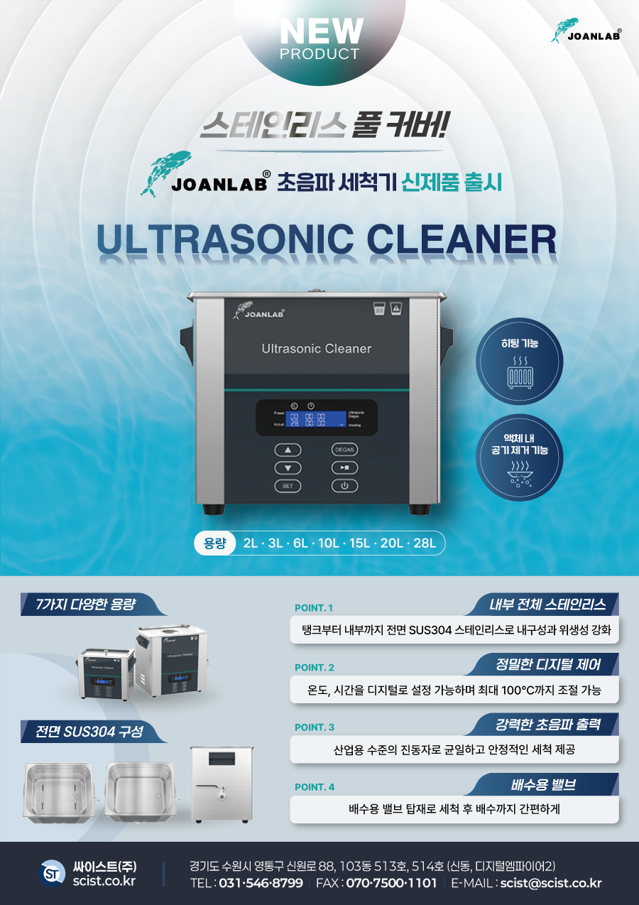 [NEW] 전면 스테인리스 풀커버 적용! 조안랩 초음파세척기 출시