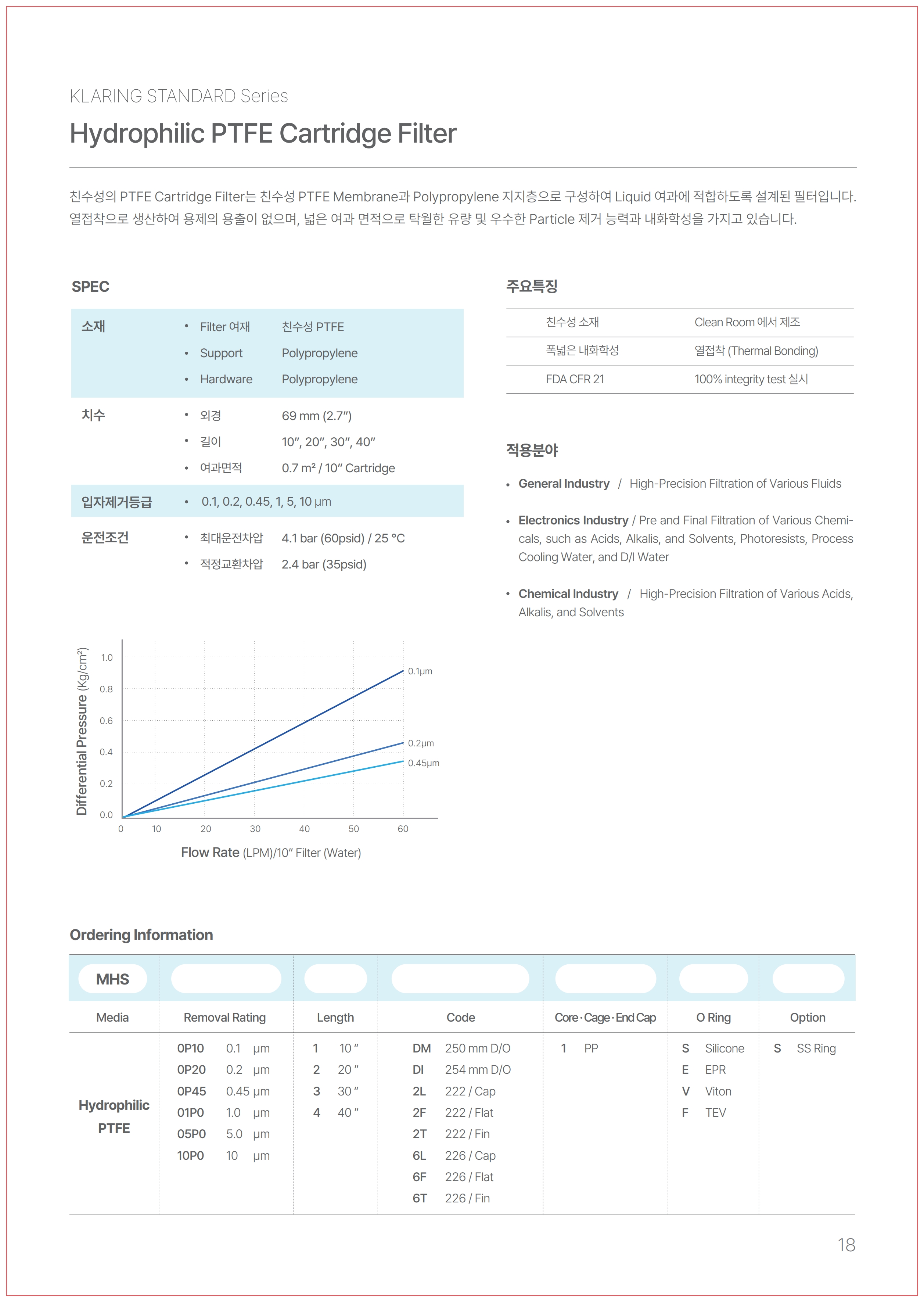 열접착으로 생산하여 용제의 용출이 없으며, 넓은 여과 면적으로 탁월한 유량 및 우수한 Particle 제거 능력과 내화학성을 가지고 있습니다.